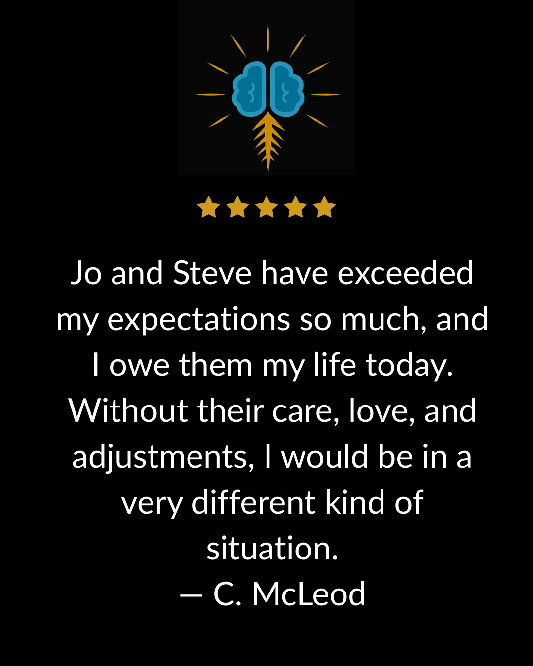This is not a massage. Not a pill. Not a cover-up. It’s precision spinal care, backed by emerging neuroscience and built around you.